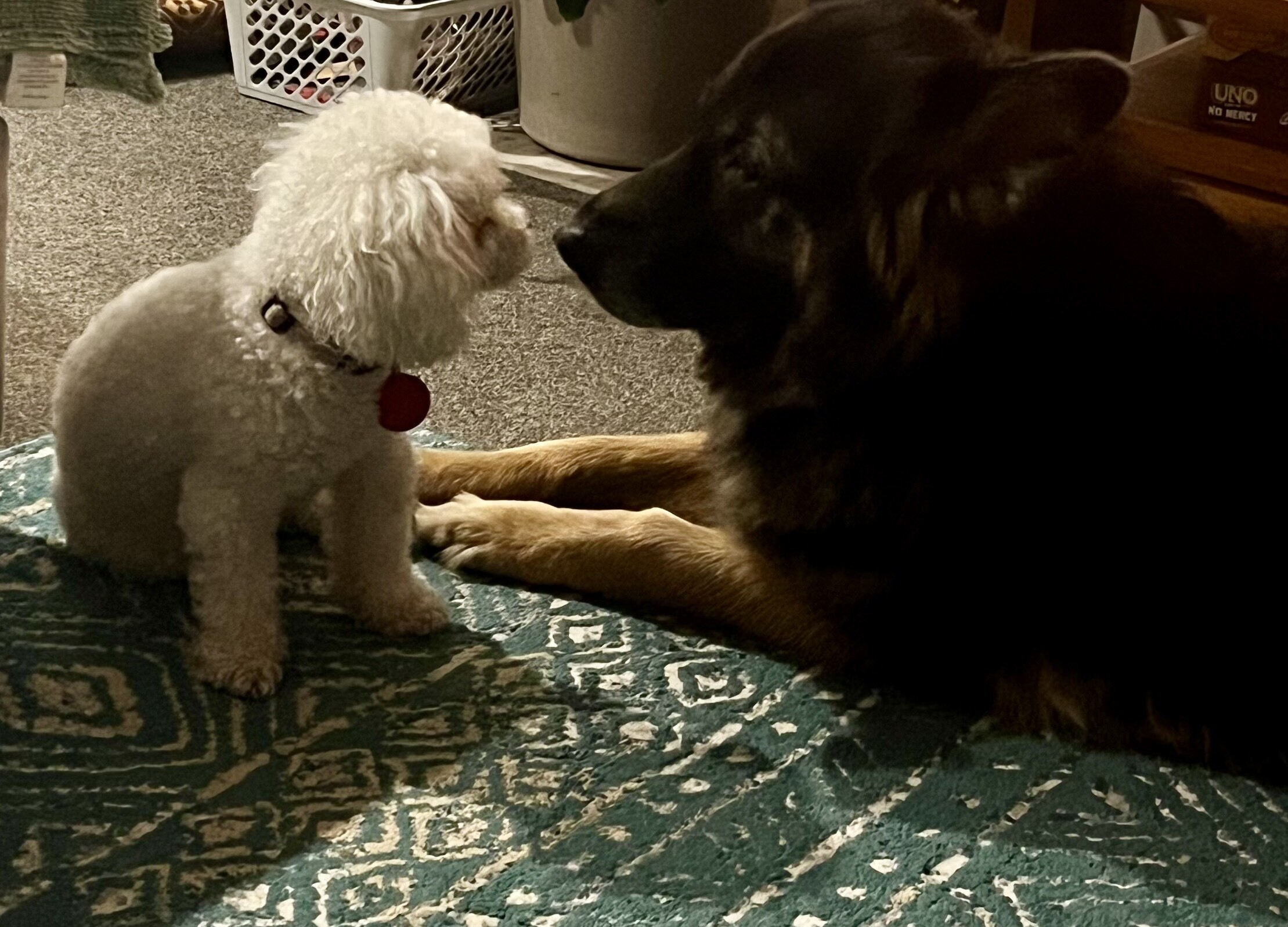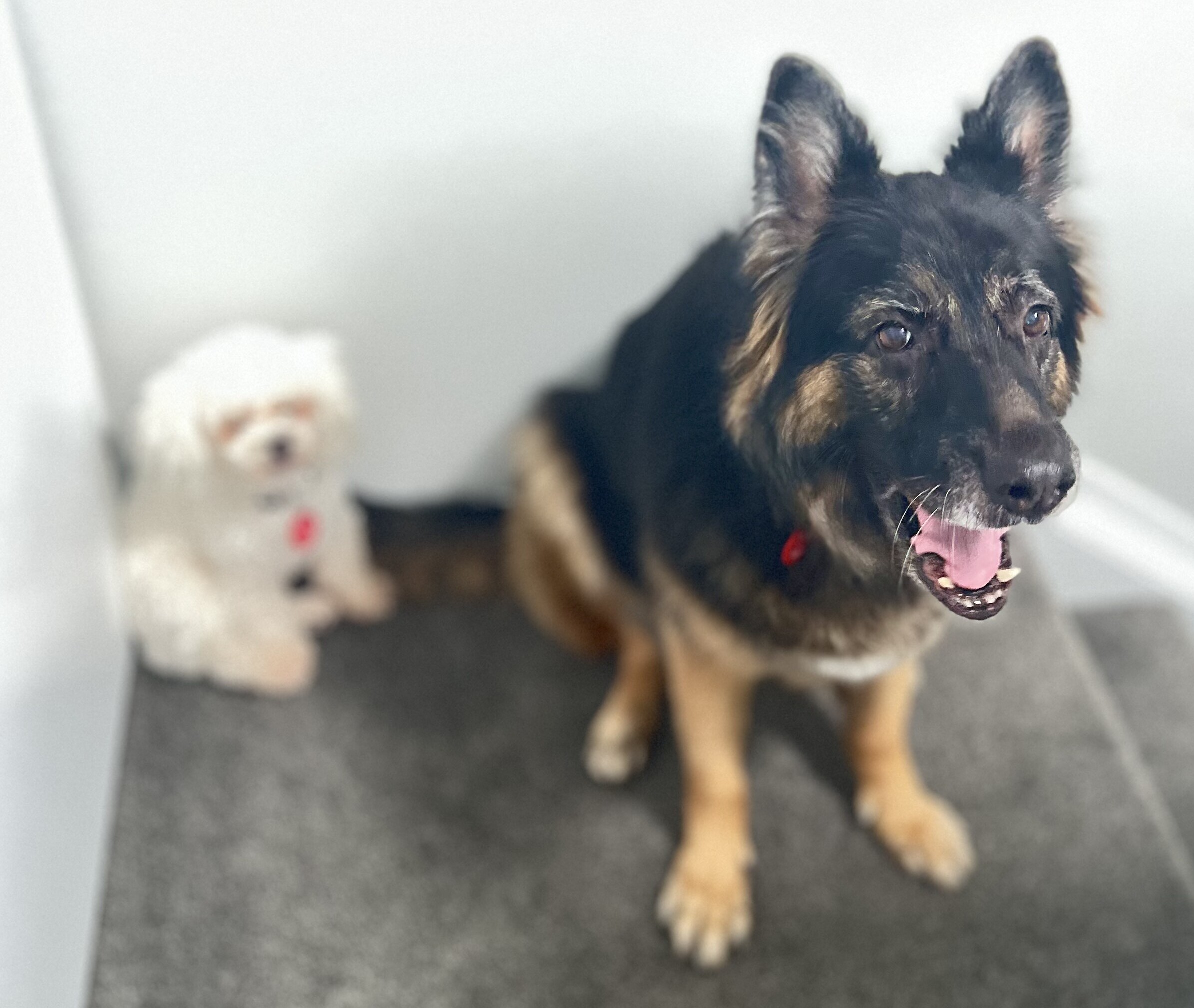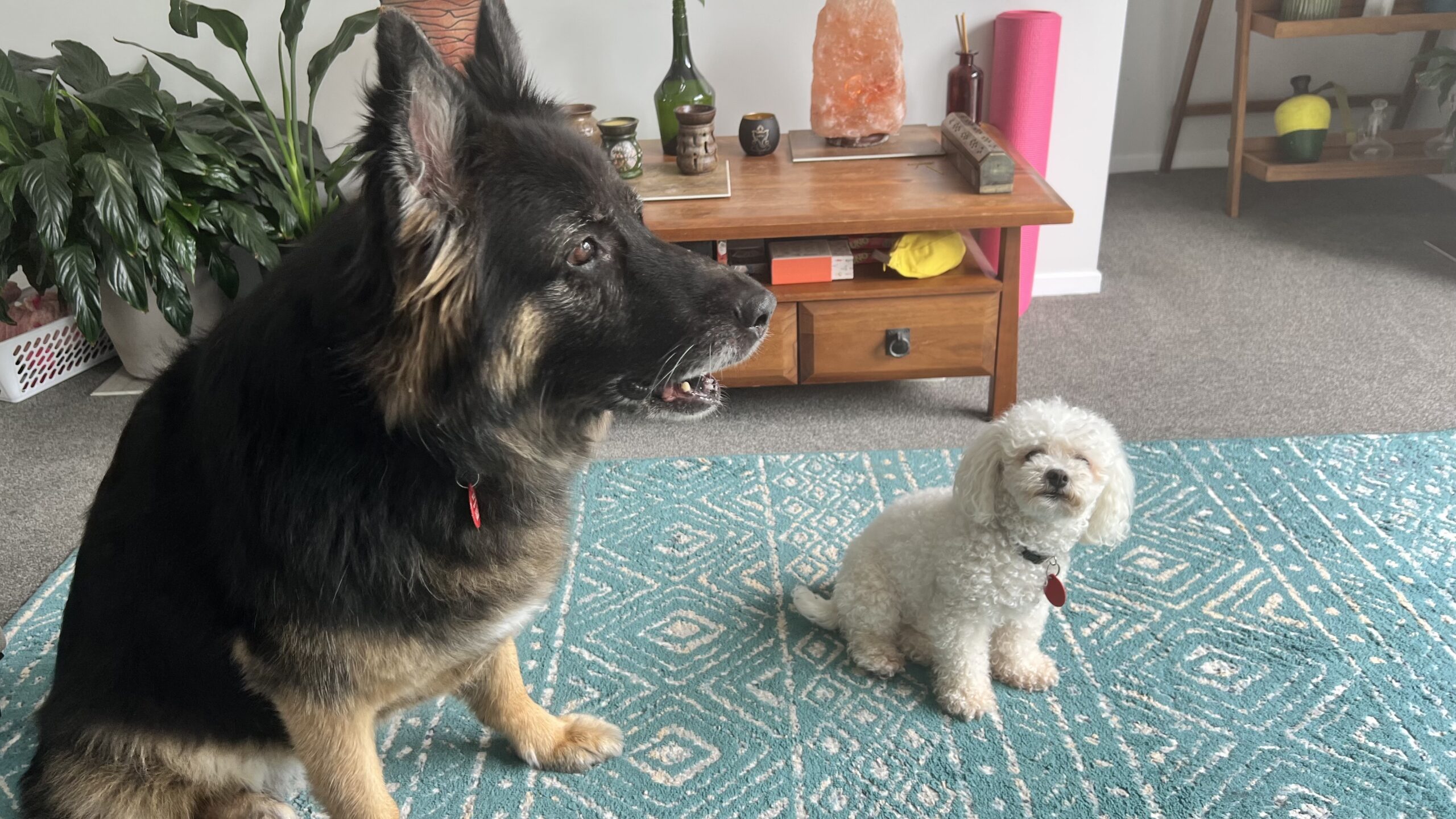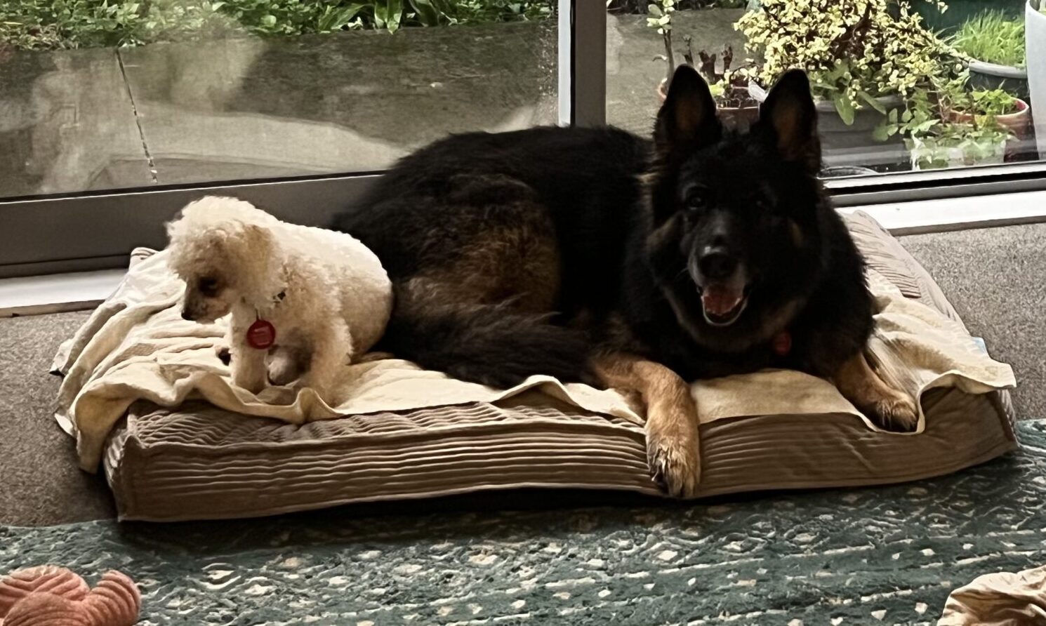 Rasna requires a home with a fully fenced yard, she does struggle with the small spaces. She sleeps most of the day, and is used to evening walks. She has a little sister who is a 6 year old Bichon Frise, they are very fond of each other. Ideally Rasna will have company most of the day with lots of walks with her humans.
